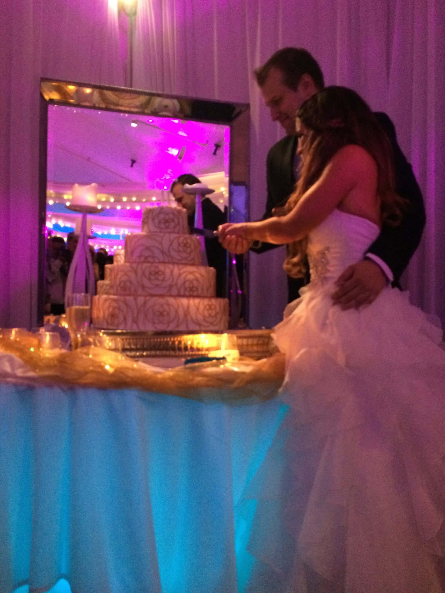 The Vineyards is a beautiful venue, and the combination of lighting, drapery, and crystal beads made the room look exquisite. Their coordinator from the venue, Brittany, made sure every detail was executed with perfection. It’s been a few years since I have worked at The Vineyards, but their new look and outstanding service makes me want to go back soon.
