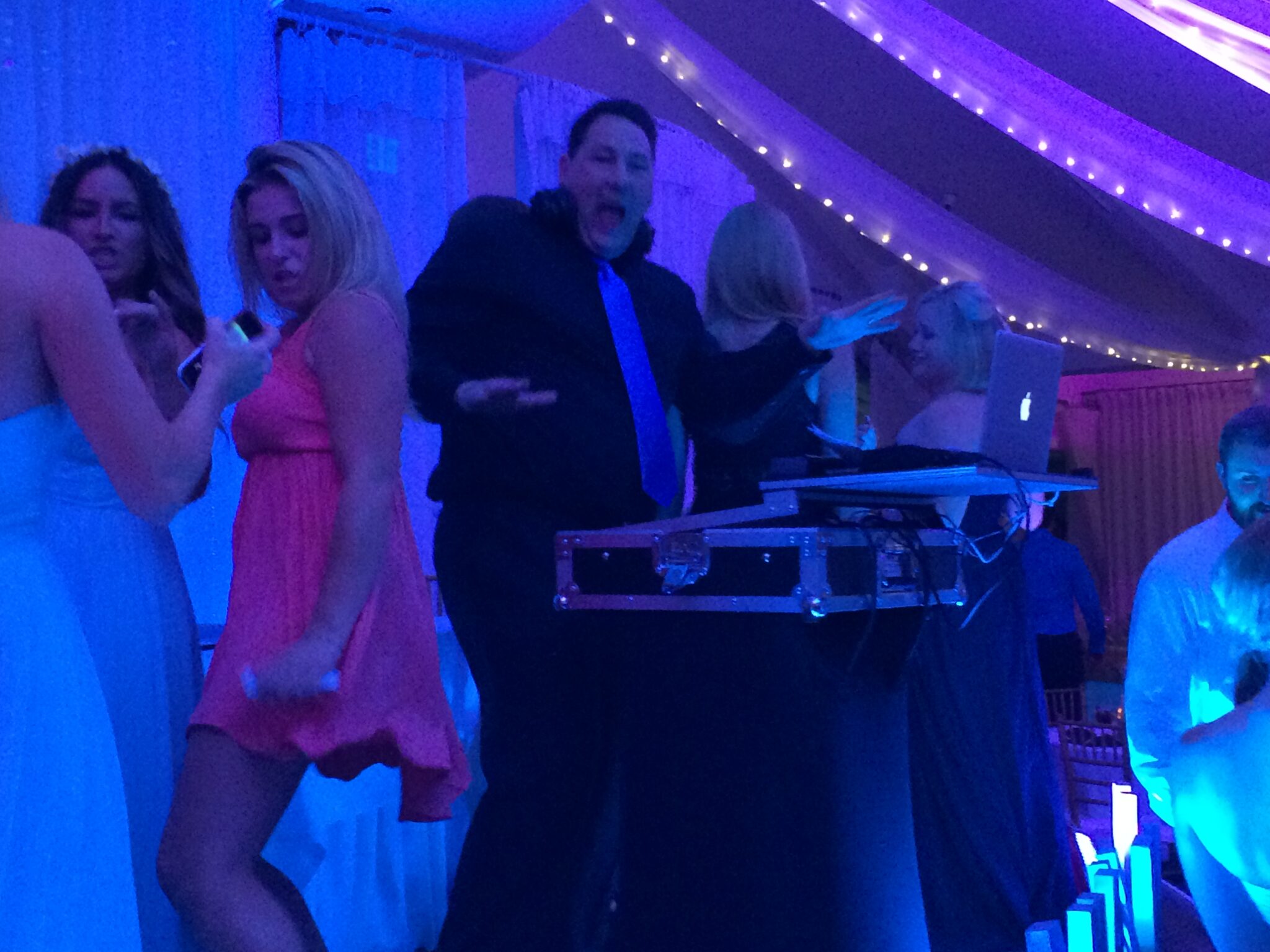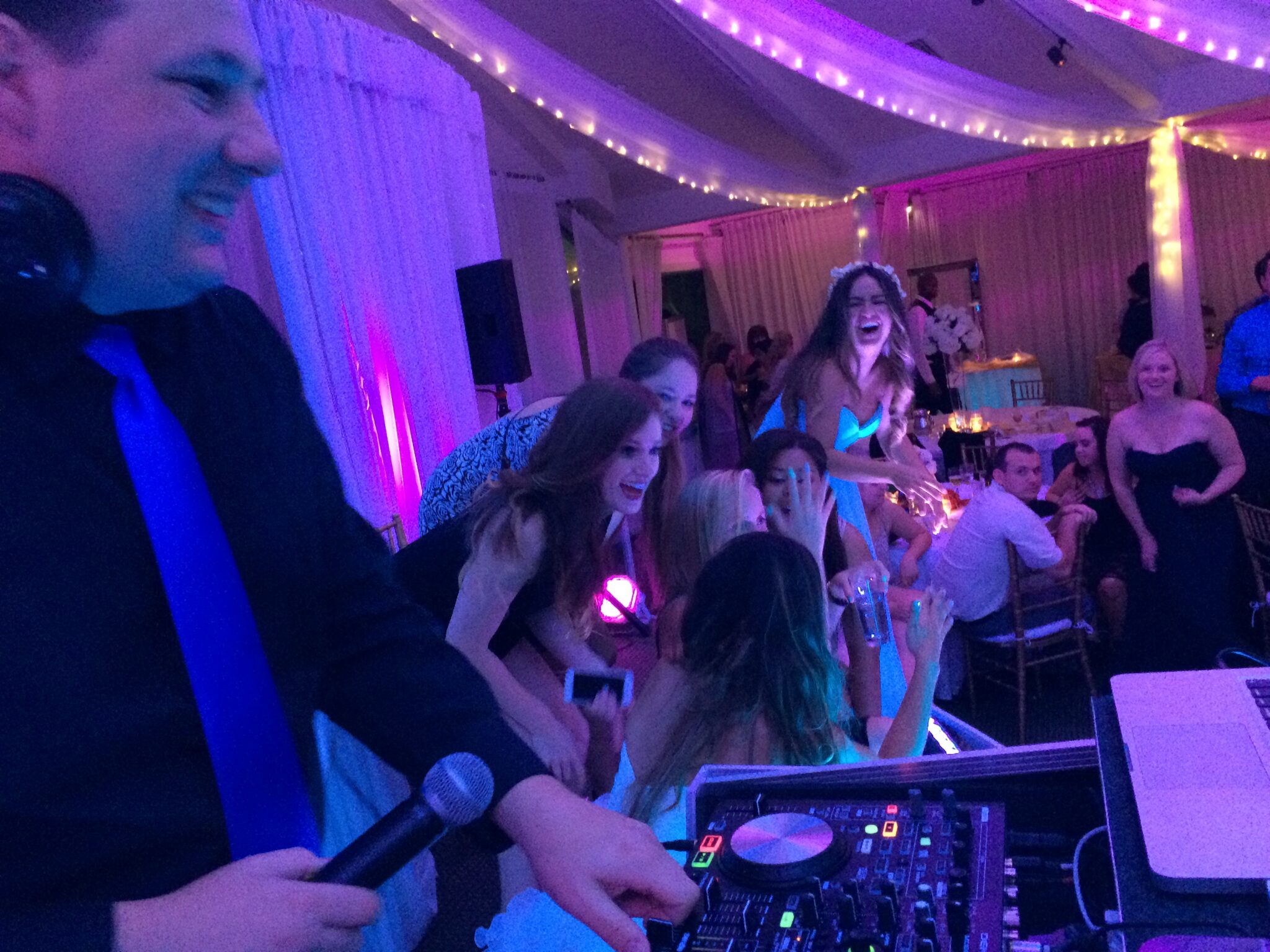 After the Bouquet and Garter toss, we started the “After Party,” a non-stop block of high energy dancing. Amanda got on the stage where I was MCing and DJing and was quickly joined by her girlfriends and sorority sisters. What ensued could only be described as NUTS! The stage was packed with people dancing to my right and left. Even I got caught up in the fun and danced along with everyone. With well over half the 200+ guests remaining, we finished the night on the highest of high notes and sent everyone off to the next After Party at The Dugout. What A Night!