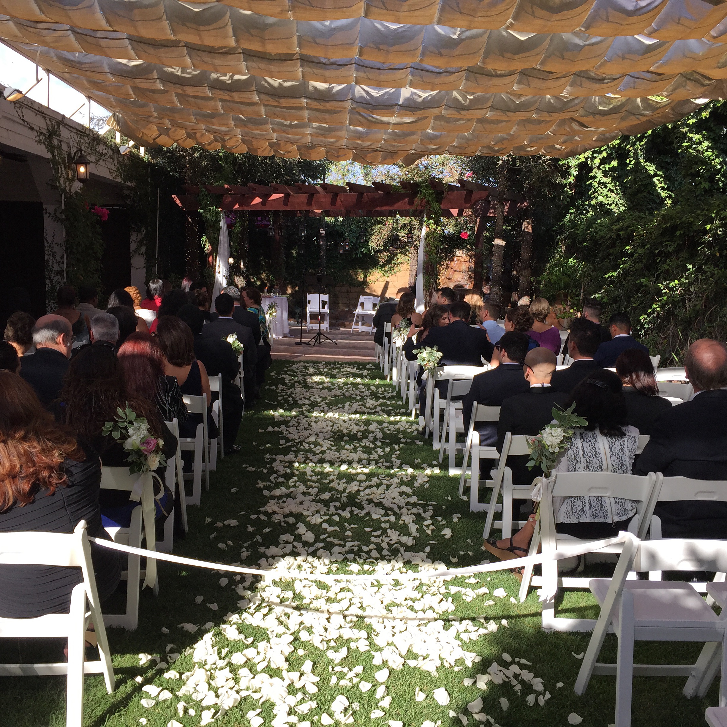 Calamigos Weddings are always a beautiful affair, and Bertha and Hector made sure to take full advantage of this. Their coordinator, Steven, who works exclusively at Calamigos, worked tirelessly to ensure every detail was executed with precision and perfection. During the hour long Catholic Ceremony, I saw him, phone in hand, texting the Mariachi Band, who needed help finding the venue. We were a little worried they might be late, but as soon as Bertha and Hector were pronounced Man and Wife, I heard them begin to play in the Breezeway for the cocktail hour. For the Grand Entrance, we brought in each couple to a different song, pumping the crowd up each time. When Bertha and Hector took to the dance floor for their first dance, Steven quickly ran out and handed Hector his cowboy hat, which he donned for almost the entire song. (Until Bertha took it from him and put it on her own head.)