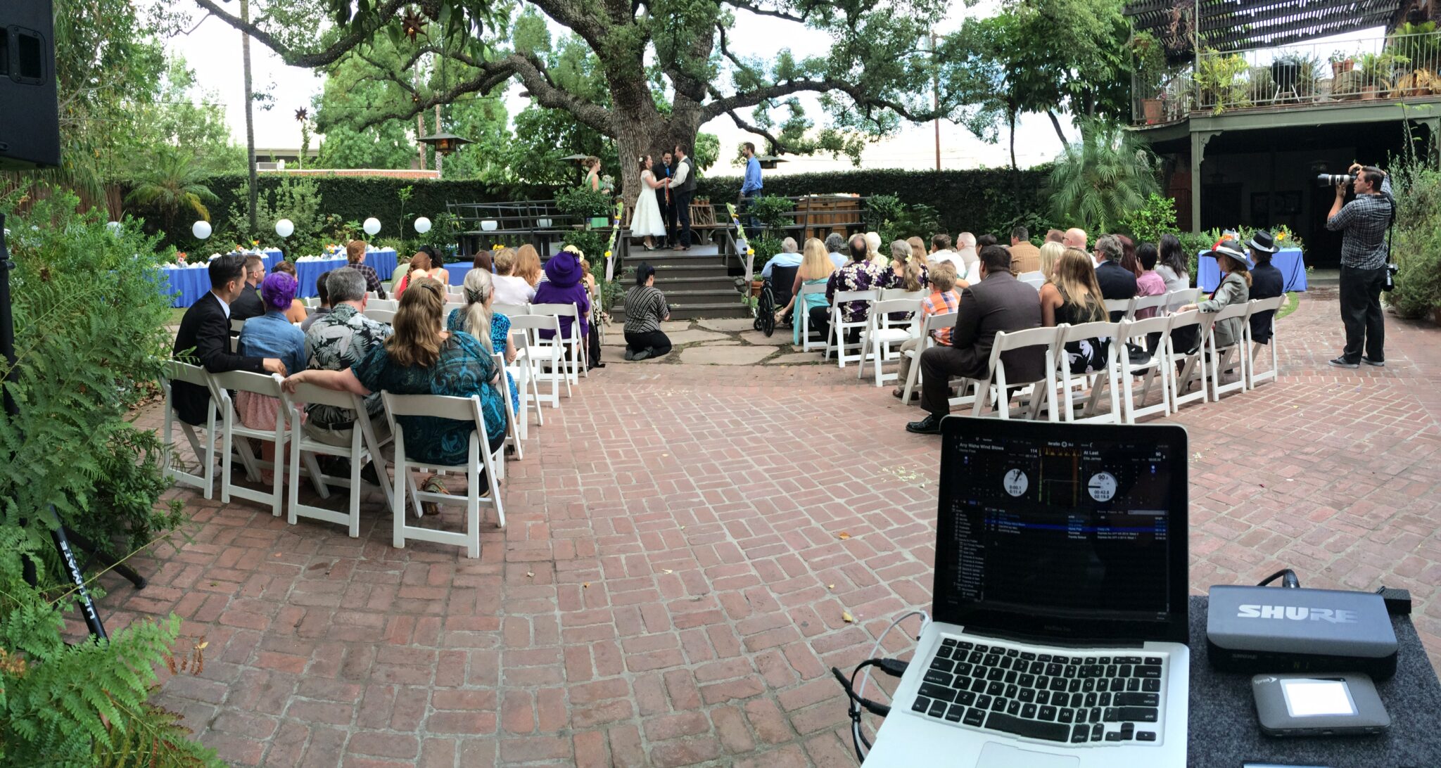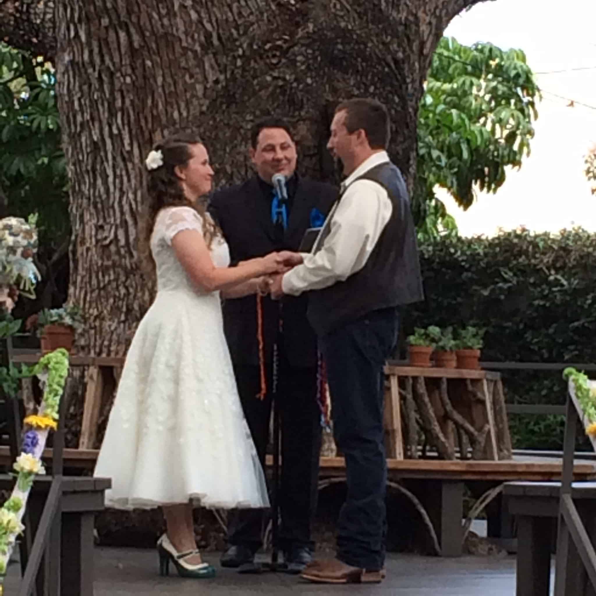 A love story like this is one every Officiant and MC lives for because you know the wedding is going to be an interesting one. I have known Rebecca for years, and we kept in touch through Facebook. One day, she posted, “I have everything booked for my wedding except for my Officiant.” I answered back, “I’m ordained. Where are you having your wedding?” Thinking it would be in South Carolina, I did not expect the answer to be Pasadena. Next thing I knew, Rebecca and I were talking about me not only officiating their wedding, but DJing it was well. Rebecca and James wrote an amazing ceremony with a traditional Celtic Hand Fasting. The ceremony under the big oak tree was absolutely beautiful.